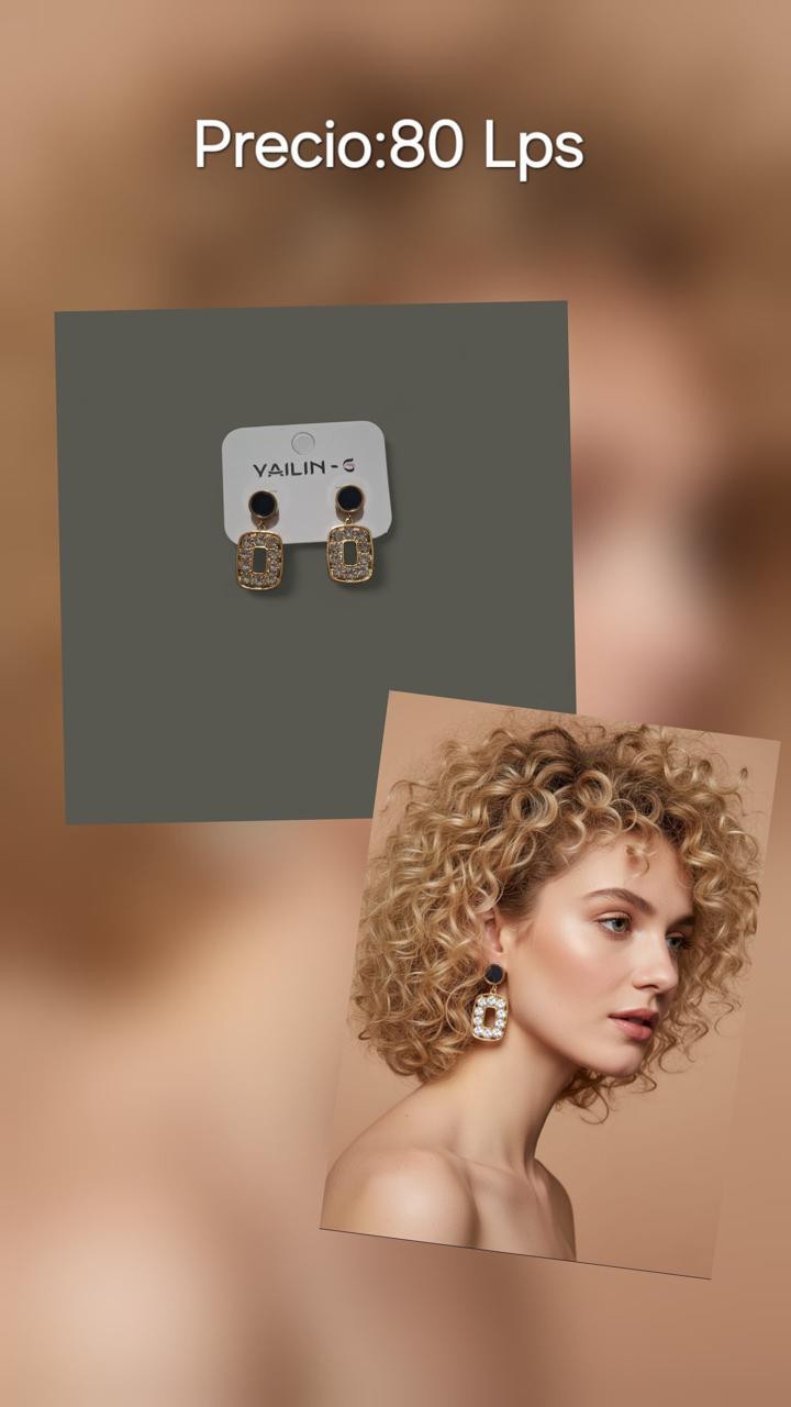 Aritos de fantasía fina con doble figura geométrica en tono dorado, ideales para destacar tu estilo con un toque sutil y glam.